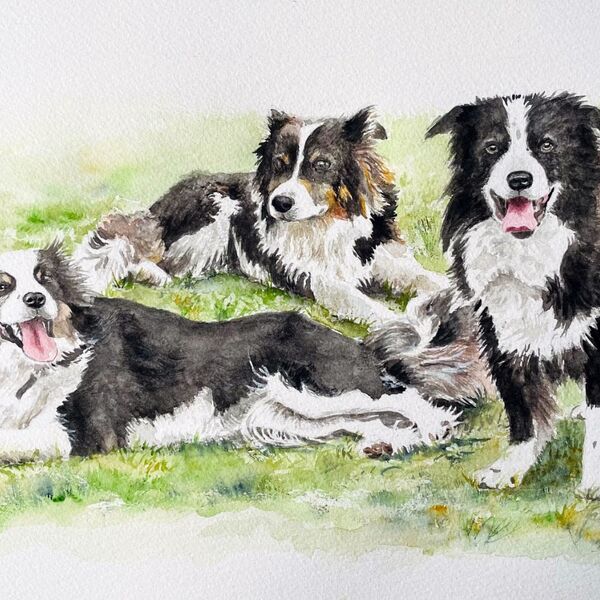 A selection of commissioned portraits of animals in watercolour. These are done from high quality photographs but whenever possible I like to meet and observe the animal, in order to get a good likeness and expression of their character.